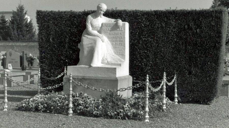 Le 31 octobre 1877, au n° 6 de la rue des Haras, à Tarbes, naît Martial Denis Joseph Caumont de Sylvain Caumont, charpentier et Claire Soulès. De tous les sculpteurs bigourdans de l’époque romantique, il est le seul dont le patronyme n’est pas devenu un nom de rue. N’avait-il pas la réputation artistique des autres heureux élus ? Non, plus modeste, sûrement. Encore que… Si j’en juge par l’excellent article écrit par Lucienne Michou et Georges Riffarth, en 1982, Martial Caumont est presque inconnu des tarbais. Ma collègue de la Société Académique des H.P nous rappelle que sa vocation « n’est pas née d’une génération spontanée » et que dans sa famille originaire de Lortet on est artisan en bois de père en fils. Les décorations et restaurations de la famille sur des meubles, carrosses, tableaux et tapisseries étaient nombreuses. Pour elle, les Caumont appartiennent à la catégorie des « Petits maîtres » travaillant chez les particuliers sur commande. Ne voyons là rien de péjoratif. Après la fréquentation de l’Ecole primaire et le cours supérieur du directeur Lahaille, il réussit, en 1896, l’entrée à l’Ecole des Beaux-Arts de Toulouse. Deux ans plus tard, il remporte le Grand prix de sculpture avec « Caïn fuyant le meurtre d’Abel ». Service militaire. Avec la bourse de son grand prix, il monte à Paris dans l’atelier du maître toulousain Falguière qui le prend en sympathie. Puis, il passe chez Mercié où il obtient le Prix d’Atelier avec « Portrait de ma mère ». Il atteint la plénitude. Ses portraits sont vivants. En 1956, Simin Palay observe la similitude entre la facture des premières pièces du bigourdan et l’hellénistique. Le bas-relief à la mémoire de Maurice Trélut, mort en captivité, lui donne raison. L’artiste est aussi réaliste. Il sculpte une ouvrière de l’Arsenal qui symbolise la solidarité du personnel de l’entreprise disparue avec les soldats et arsenalistes morts pour la Patrie.